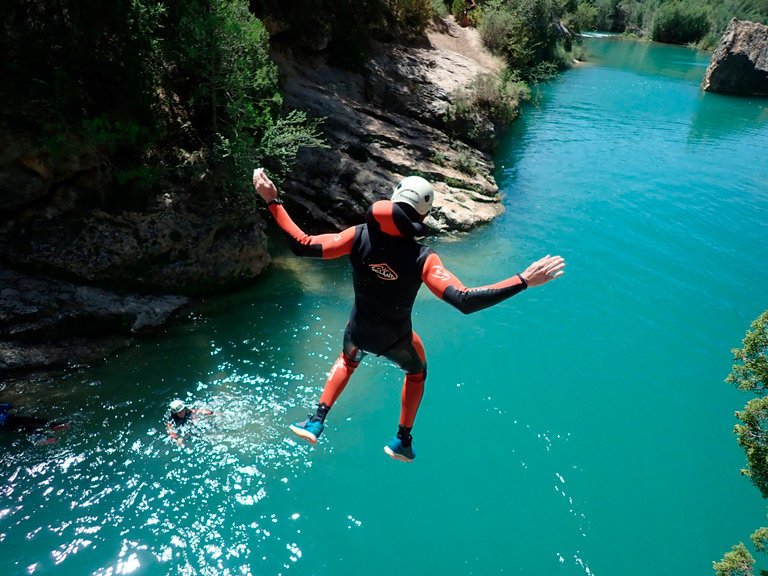 Proponemos esta combinación de actividades perfectas para disfrutar de un completo día en el río Júcar, una Actividad de Barranquismo emocionante y divertida, además de poder recorrer las impresionantes paredes del cañón que pasan por debajo del mirador del Ventano del Diablo subiendo por la vía ferrata que nos hará sentir la adrenalina en su estado más puro.