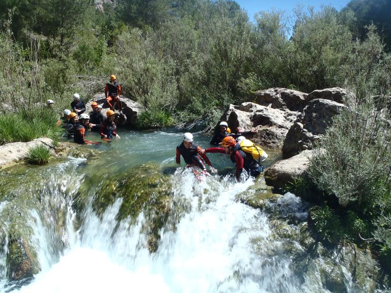 El barranco del Júcar en Cuenca es perfecto para realizar en familia o con amigos, un barranco muy acuático cerca de Madrid y que pondrá a prueba nuestra valentía saltando por las cascadas de agua.